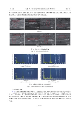 凝土中的典型元素)含量明显增高,而 Fe 元素含量明显降低,说明弹靶材料在高温高压作用下发生了氧