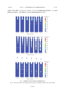 图 26 3 种聚能装药对不同水介质长度中双层靶板的侵彻过程