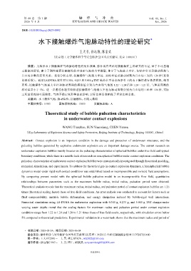 关键词: 水下爆炸气泡;脉动特性;接触爆炸;有限元模拟