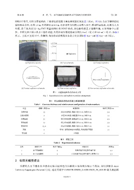 HPB335 型号,填料为普通河砂,主要部位的混凝土厚度和配筋情况如表 1 所示。图 1(b) 为水下爆炸的试