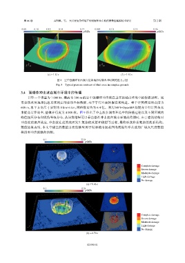 来提高计算效率,整体并行度为 4 000 核。图 9 给出了冲击波在城市环境中的传播过程以及不同区域的