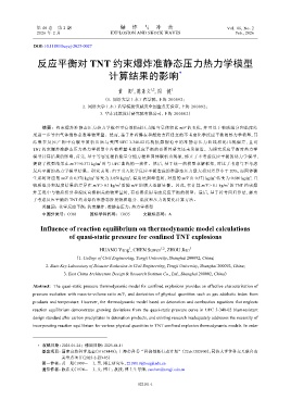 反应平衡的热力学模型结果。研究表明:由于引入化学反应平衡造成的准静态压力最大相对差异小于 20%,而固体碳