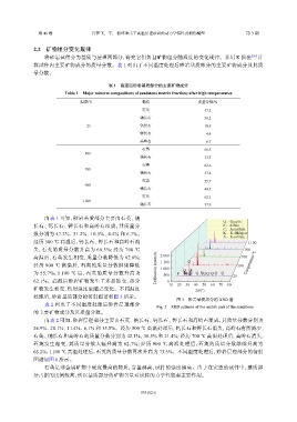 经历 900 ℃ 高温后,石英的质量分数继续降低 Diffraction intensity 1 500 500 Temperature/℃