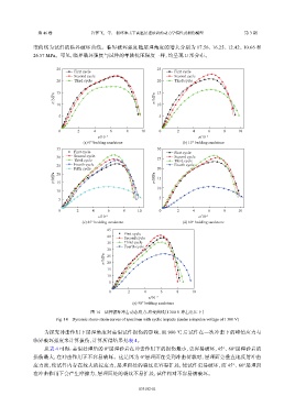 变曲线为试件的临界破坏曲线。临界破坏强度随层理角度的增大分别为 17.56、16.25、12.42、10.66 和