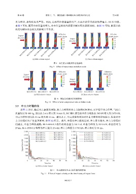 如图 11 所示,随着冲击速度的增加,冲击力峰值和冲击力持续时间增大:对于柱中冲击位置,当冲击