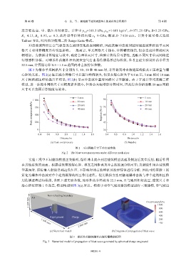 在其他建筑的表面。根据建筑模型爆心距、相互之间距离及冲击波波速分析可知,反射波作用在建筑模