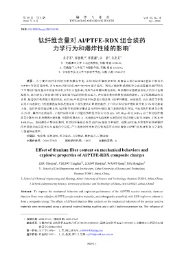 大值。爆炸性能实验结果表明,短切钛纤维能够显著改善 Al/PTFE-RDX 组合装药的爆炸性能,当短切钛纤维质量分数