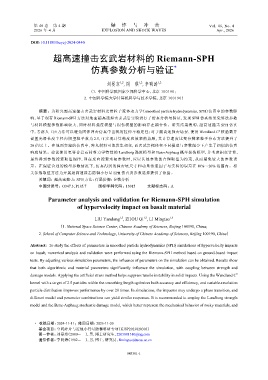 响,基于现有 Riemann-SPH 方法对地面超高速撞击玄武岩实验进行了仿真分析与验证,发现 SPH 仿真结果受算法参数