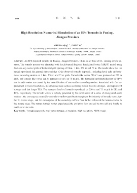 Key words:Tornadic supercell;muti-vortex tornado;simulation;high resolution;ARPS model