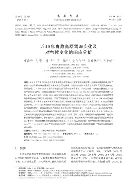 1980 -2020 年积雪季青藏高原雪深的时空变化规律, 并结合水热因子探究了雪深对气候变化的响应。