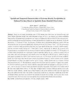 Key words: extreme hourly precipitation; Sichuan; complex terrain; DEM