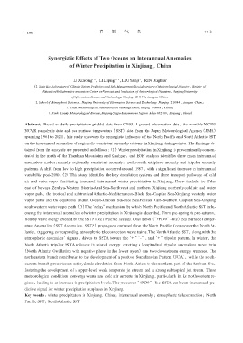 Key words: winter precipitation in Xinjiang, China; interannual anomaly; atmospheric teleconnection; North