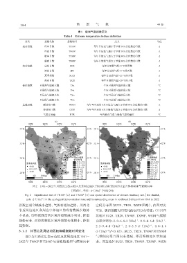 2022 年 TN90P 和 TX90P 显著性检验和气候倾向率 著。周边地区SU25、 TR20、 TN90P、 TX90P、 WSDI