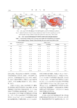 表2 1980 -2020年积雪季青藏高原平均雪深年际变化速率及其显著性检验统计