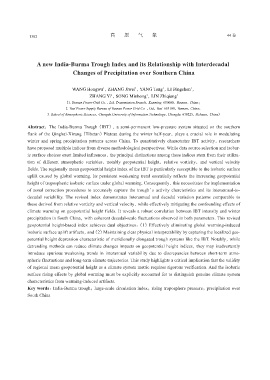 Key words: India-Burma trough; large-scale circulation index; rising troposphere pressure; precipitation over