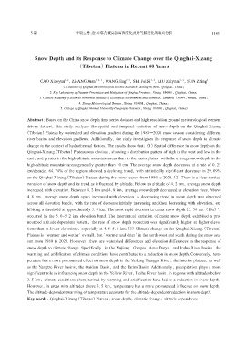 Key words: Qinghai-Xizang (Tibetan) Plateau; snow depth; climatic change; altitude dependence