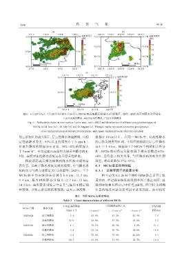 于 5 mm·h , 平均近地面雨强约为层云性降水的4~ 析, MCSs 的雨强与反射率因子相关系数达 64%~