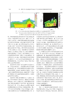 波方面有更好的刻画; GPM 剖面中反射率因子最 分布在 34~42 dBZ。对流性降水的这种分布特征与