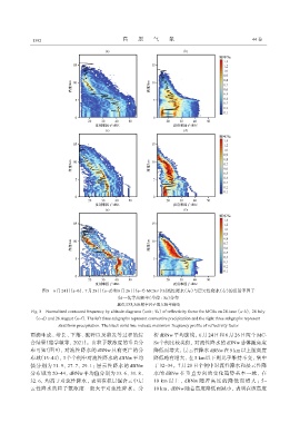 布域(15~44), 3个个例中对流性降水的 dBNw 平均 降低略有增大, 在 5 km 以下则几乎维持不变, 集中