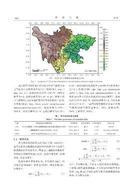 2021 年, 时间分辨率为 1 h, 空间分辨率为 0. 25°× 2022; 王彩霞等, 2022)。