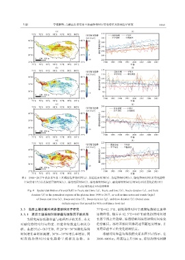 对融化持续时间与纬度、 经度和海拔进行相关分 趋势相反。冻结开始时间推迟速率随经度增加, 并