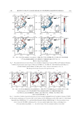 年平均复合极端风雨事件(CWPE)模拟相对于观测的相对偏差分布(单位: %)
