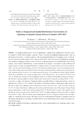 Key words: Qinghai-Xizang Plateau; lightning activities; spatio-temporal distribution; lightning number; inten‐