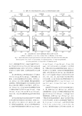 平均降水增加量分别为 46 mm (69 mm)、 37mm 本一致, 如图 6(m)~(p)、 图 8(m)~(p), 由西北向