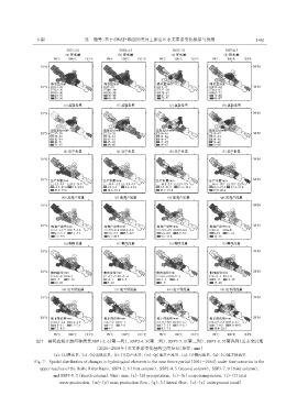 图7 黑河流域上游四种情景SSP1-2. 6(第一列)、 SSP2-4. 5(第二列)、 SSP3-7. 0(第三列)、 SSP5-8. 5(第四列)近未来时期