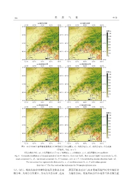 侧分布, 大部分为负值区, 方向为自东向西, 造成 为偏东方向。绕流纬向分量在地形主体北侧为正