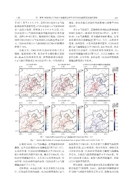 组和 CMA 组的 2 m 气温 RMSE 之间的差异逐步扩 北区域内均呈现暖偏差[图 7(a), (b)], 在河北中