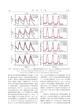 和 CMA 组预报的相对湿度效果相当(图略)。相较 高气温, CLDAS组感热、 潜热通量呈现“一高一低”