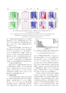上, 并且偏差持续到降水结束。 12. 5 mm·h 和 20~30 mm·h 的降水区间高估更为