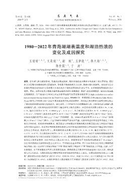 FLake)研究了青海湖 1980 -2022 年湖表温度的变化和热浪特征, 利用相关性分析和去趋势分析法揭示