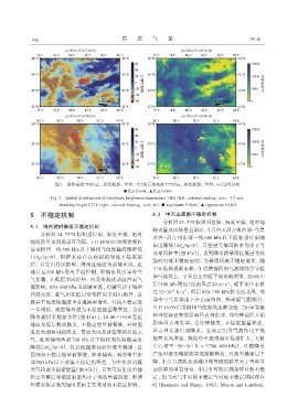 Fig. 3 Spatial distributions of blackbody brightness temperature TBB (left, colored shading, unit: ℃) and