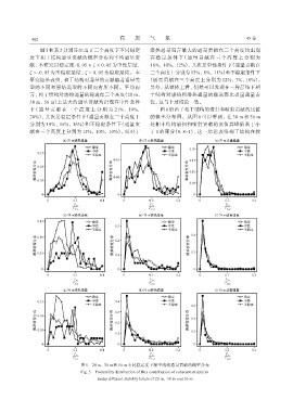 20%), 其次是稳定条件下(通量贡献在三个高度上 的概率分布图。从图 6 可以看到, 在 38 m 和 56 m
