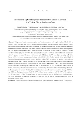 Key words: black carbon aerosols; brown carbon aerosols; optical properties; radiative effects; Chengdu area