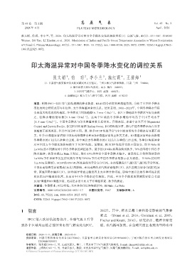 [1. 5 mm·(10a) ]。中国冬季降水与印太海温异常关系密切。具体来说, 赤道中东太平洋(Equatorial