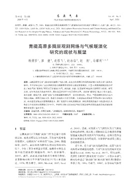 1 引言 al, 2018)。因此, 对高原天气气候特征及其气候变