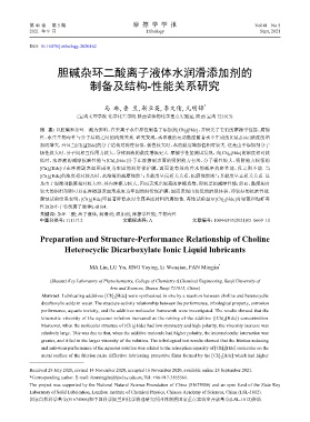 关键词: 杂环二酸; 离子液体; 润滑剂; 添加剂; 摩擦学性能; 生物毒性