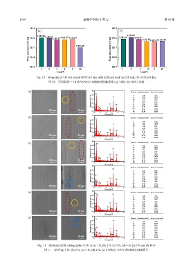 图 11 3J1在(a) 1 N、(b) 2 N、(c) 3 N、(d) 4 N、(e) 5 N和(f) 10 N下的SEM及EDS照片