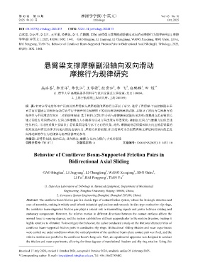 高冰鉴, 李京洋, 李长江, 王学强, 经贵如, 李飞, 白鹏鹏, 田煜. 悬臂梁支撑摩擦副沿轴向双向滑动摩擦行为规律研究[J]. 摩擦