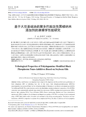 胺(BP-PDA)纳米复合材料. 采用球盘摩擦试验仪以钢/钢为摩擦接触副,研究了BP-PDA作为大豆油润滑添加剂的