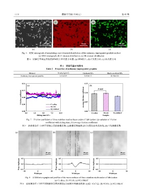 图 8 油润滑条件下3种不锈钢磨损表面形貌的LCSM照片和磨斑轮廓:(a)进口Cr合金;(b) 9Cr18;(c) 9Cr18MoV