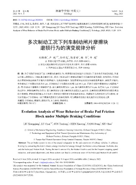 而不断增加. 摩擦块的接触压力分布和主要磨损区域的演变受初始磨损状态、热膨胀行为和磨损行为共同影响. 研