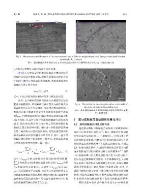 图 5 楔形裂纹损伤在深度方向上不同形态截面积的尺寸测量和表示方法:(a) 三角形;(b) C型