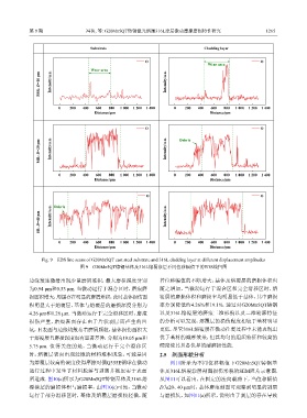 边缘发生微滑出现少量磨屑堆积,最大磨损深度分别 着位移幅值的不断增大,基体及熔覆层的磨损体积也