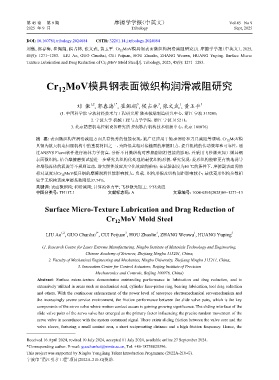 刘傲, 郭春海, 崔佩娟, 侯占林, 张文武, 黄玉平. Cr 12 MoV模具钢表面微织构润滑减阻研究[J]. 摩擦学学报(中英文), 2025,