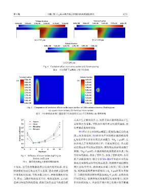 Fig. 4 Cavitation effect on xz cross section at different spacing