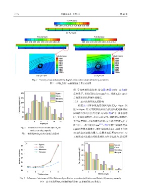 Fig. 8 Influence of micro-texture depth h p on 2 μm时摩擦系数最小,最小油膜厚度在1 μm时单位面